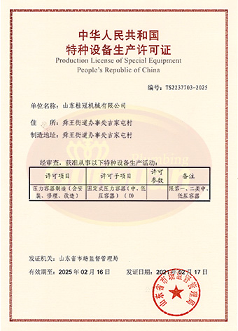 山東桂冠機(jī)械有限公司成立于2008年,注冊(cè)資金1600萬(wàn)元,現(xiàn)有員工200多人,中高級(jí)技術(shù)管理人員45人,占地面積27000多平方米,生產(chǎn)車間面積12000多平方米。公司具備壓力容器產(chǎn)品的設(shè)計(jì)、制造(證書編號(hào)為:TS2237703-2025)、壓力管道安裝(證書編號(hào)為TS3837607-2025)全套壓力容器資質(zhì);通過(guò)國(guó)家ISO9001質(zhì)量管理體系認(rèn)證、美國(guó)ASME認(rèn)證、歐盟CE認(rèn)證;擁有建筑安裝機(jī)電工程專業(yè)承包叁級(jí)資質(zhì)、建筑工程施工總承包叁級(jí)資質(zhì)及對(duì)外貿(mào)易經(jīng)營(yíng)出口權(quán)…